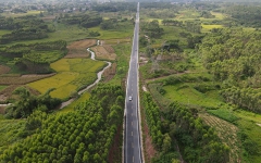 盘王河大桥左线、右线各14跨,,,,,,桥长427米,,,,,,共计168片30米T梁,,,,,,于2020年10月11日成功架设首片T梁,,,,,,11月28日实现半幅...